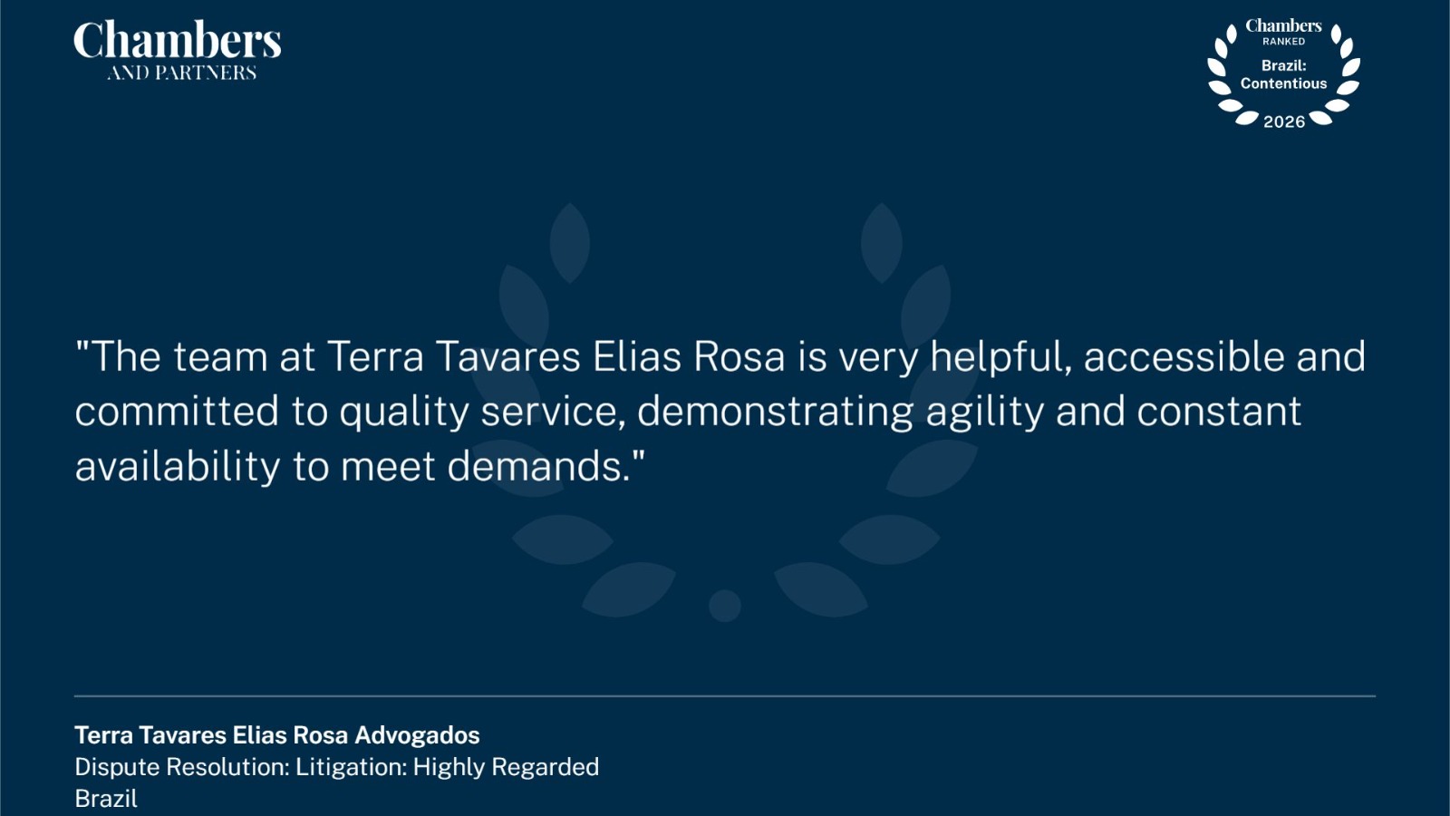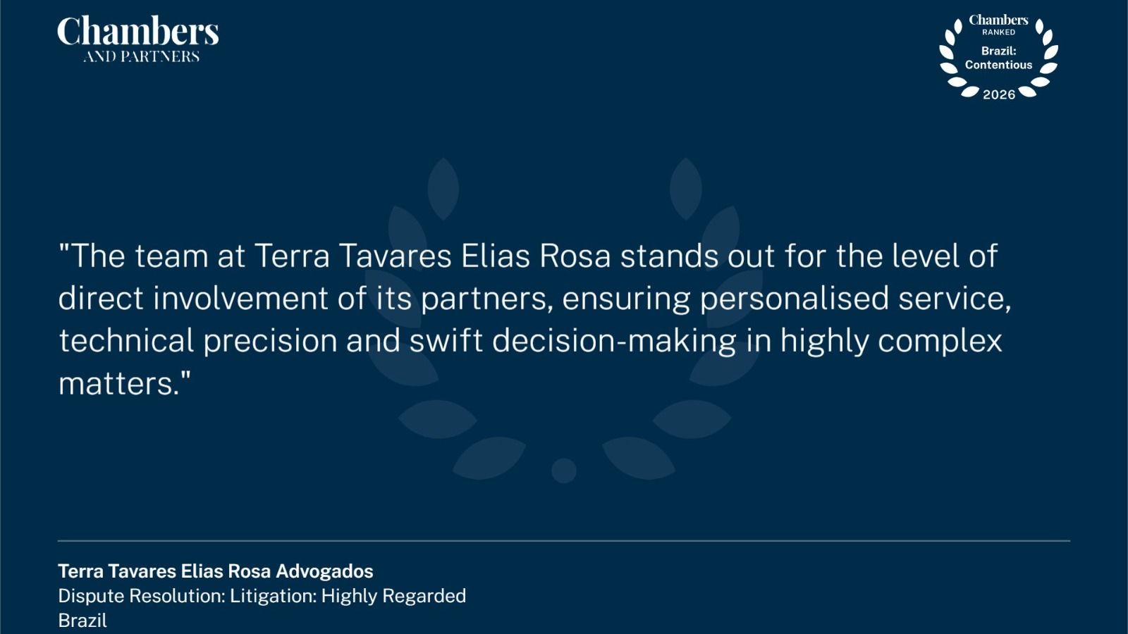 O Terra Tavares Elias Rosa atua em processos contenciosos judiciais, administrativos e arbitrais, nas mais variadas áreas do Direito Civil, Empresarial, Administrativo e Regulatório.